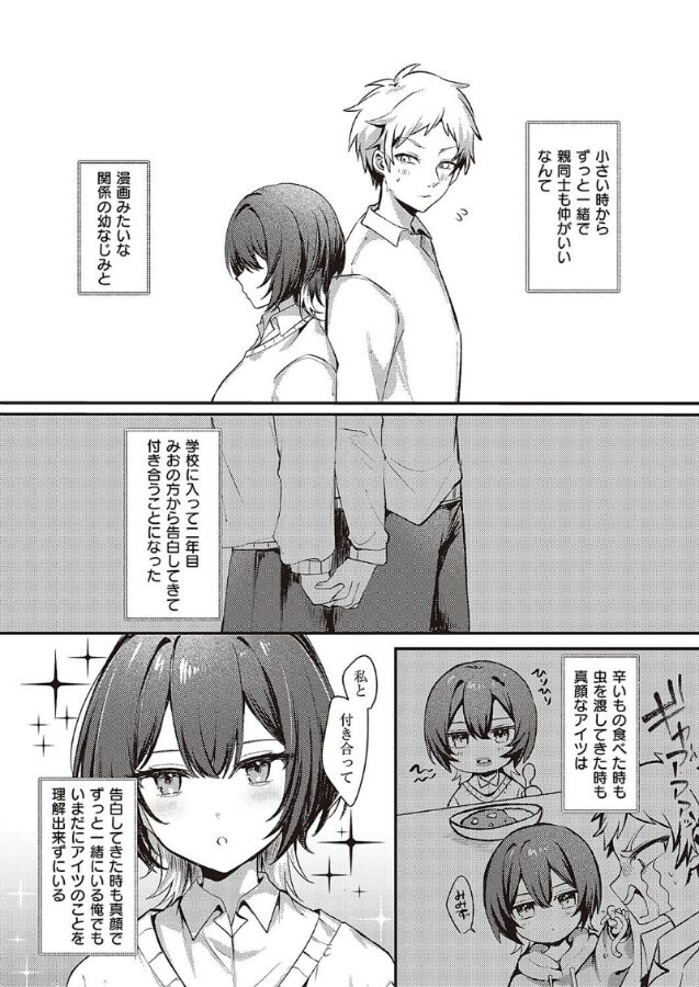 無口だけどかわいくて巨乳な幼なじみ・みおと付き合ってから、なかなか手が出せず、ずっとキス止まりの俺。今日も勇気が出ず諦めてゲームをしていると、なんとみおが股間に乗ってきた!?思わず勃起してしまった俺のおち○ちんに興味を示したみおは、楽しそうに手コキをし始めたんだが…!!令和の萌パイ絵師・乃莉助先生がデビュー☆ 物静かな恋人が積極的に求めてくるギャップに絶頂必至♪