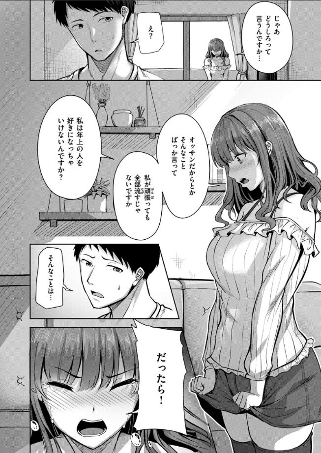 「一回だけでも…シて…ください…」OLの逢沢(あいざわ)はタバコ好きで喫煙所で一緒になる年上の多田(ただ)に片思い中。ある週末、逢沢は多田を買い物に付き合わせ、部屋に連れ込むのに成功。しかし、下着を見せても多田はつれないどころか、からかわれたと勘違いさせて怒らせてしまう。そんな多田に、逢沢は一回だけでもと迫って……。