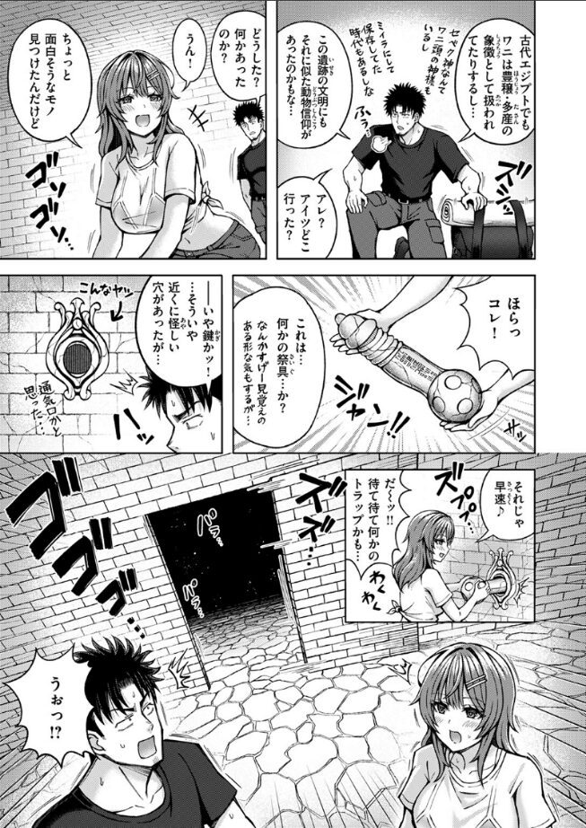 (気持ち良いトコ全部…っ♪ 発掘されちゃうぅ…♪)トレジャーハンターの力也(りきや)は宝探しのために訪れたある島で、美人動画配信者のMEGる(めぐる)と再会。島の遺跡の怪しい部屋に閉じ込められた2人は、SEXしないと部屋を出れない事を知り!?