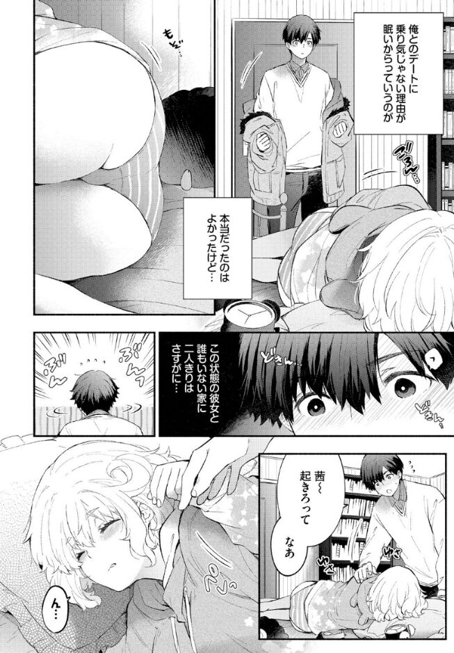 【おねむだけど彼は受け入れちゃう彼女に胸キュン♪】最強純愛コミッカー・あずみ京平が描く、うとうと娘の甘トロ悶絶頂!よく眠る体質の彼女・茜の家に来た主人公。想定どおり寝てしまっている茜の無防備な姿を見ておずおずと襲い始める。少しだけ…そう思いながらも行動はエスカレートしていき、クンニしているとついに茜が目覚めてしまう!しかし、茜は照れながら「えっちなことする夢を見てた」と言い出して…!?