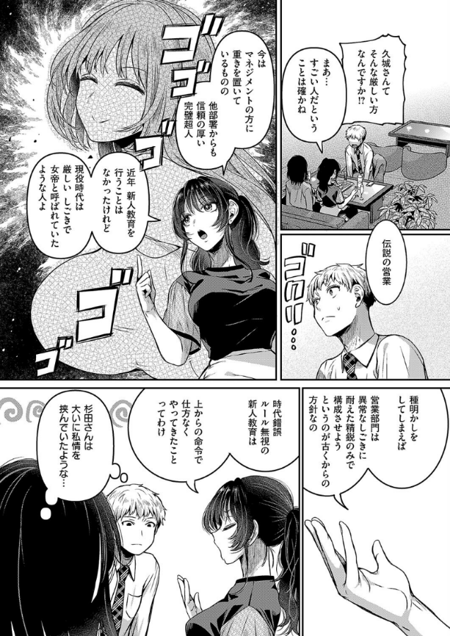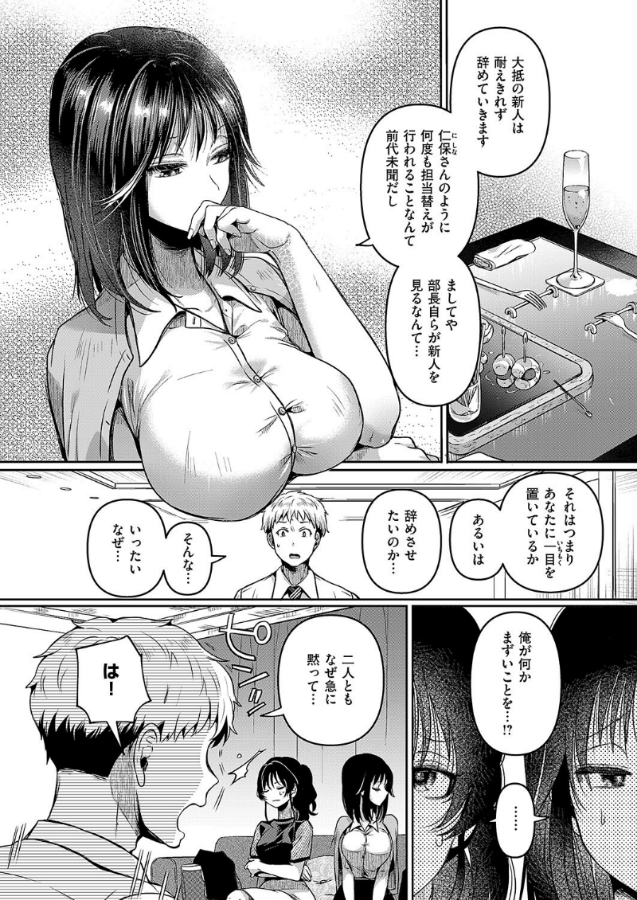 新しい上司に同行することになった仁保と、彼と関係を持ってしまった元上司の杉田さんと檜山さん。怖い噂のある新しい上司の情報交換のため、二人と飲みに行った仁保だったが、案の定ラブホに連れ込まれてしまう!!仁保は流されるまま酒癖の悪い杉田さんと檜山さんに、おくちとおま○こで搾られまくって…♪ 美肉レジェンド・ドウモウ先生が描く、オフィスエロコメ第4話!!