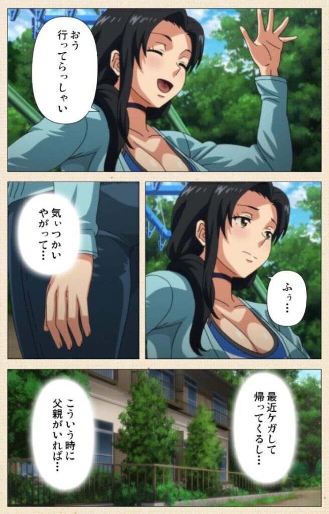 【フルカラー63ページ】友子は息子の正伸が怪我をして帰ってくることを心配していた。だが正伸に尋ねても怪我の理由を話してくれることはなく友子は息子の力になることが出来ないでいた。友子はそんな自分をもどかしく思うのであった。ある日、同級生の戸川が訪ねてくる。彼の話だと正伸は自分と一緒にいじめを受けているという。友子は悩んでいる戸川を前に力になってあげたいと思い相談に乗ることにする。戸川はためらいながら自分が童貞であることが原因だと言う。友子は驚くが真剣に悩んでいる戸川を見て、胸をさわらせて元気づけてやろうとするのであった。