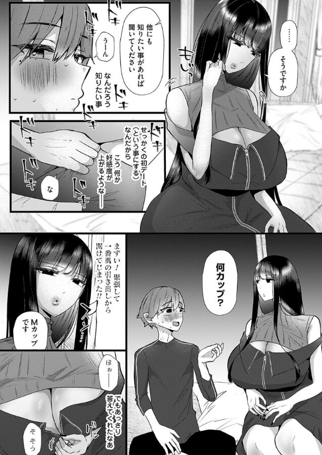 あなたの性癖、全部わかってますから…。地味系デカ女で愛重め。見下ろし僕だけに見せてくれる彼女の仕草に腰砕け!?同期の大沼(おおぬま)すずさんは、影で『八尺様』と呼ばれている。高身長で物静かなためか、周りから距離を置かれているが僕はそんな奥ゆかしい彼女が好きだ。なんとか取り付けたデート当日。大沼さんは深い谷間とぶっとい太ももがスリットであらわになった服でやってきた!会社での肌の露出を抑えた格好とのギャップがすごすぎるよ…それに胸はMカップもあるなんて…個室で僕が生乳を見たそうにしてたからか、突然大沼さんは服を脱いできた!初めて見て触るおっぱい&陥没乳首。重すぎる胸を掻き分け勃起乳首を露出させむしゃぶりつく。「やっぱり胸が好きなのですね」どうやら僕が普段会社のPCでエッチなサイトを徘徊してるのを目撃して、大沼さんは僕の好みに色々合わせてくれたらしい。汗で湿った肉厚の脇まで舐めさせてくれるなんて健気でエロ可愛すぎる!だけど服の上から太ももで股間を刺激されてすぐ射精しちゃう僕、早漏すぎて情けなさすぎる…そしてペアルックの恥ずかしい服に着替えさせられて、大沼さんの身体で僕は押し潰される。「たくさん射精できて偉いですね」密着素股マンコで無様にまた射精、アナルディープキス手コキで追い討ち射精。好みや弱点を知り尽くされた僕は、大沼さんを満足させることができるのだろうか…