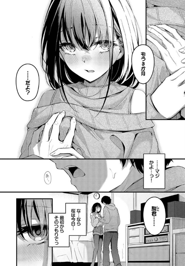 【焦れた二人の距離を縮める雨…ウブな男女の甘い初体験!】人気絶頂コミッカー・くっきおーれが描く、もどかしさに胸キュン必至の純愛譚♪桜とつきあい始めて3か月になる駿。ウブな二人がいじらしく距離感で悩み続ける中、まさかの雨でデートは中止…。分かりやすく落ち込んでいると、桜が親が不在の自宅に招いてくれる。 人目のない密室に二人、一途なキモチがあふれだした二人の距離は急接近し始めて!?漏れる吐息を優しくかき消す雨音…待ち焦がれていた甘くセツない初体験♪