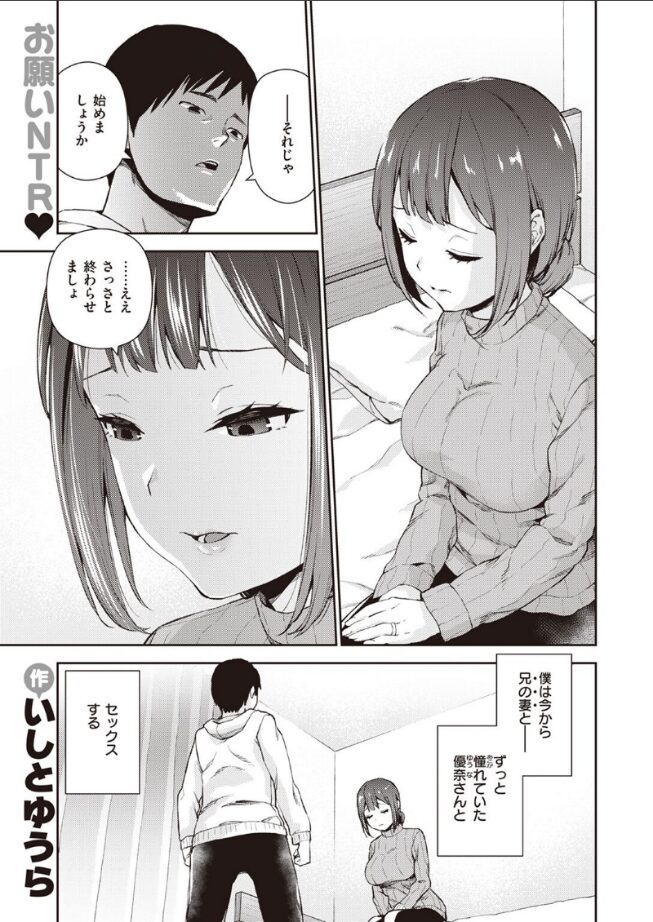 「お願いです……中にっ……中に精子くださいっ」大好きだった優奈(ゆうな)さんが、大嫌いな兄と結婚した。裏切られたと思っていたけど……チャンスは突然やってきた!!兄の種無し発覚、精子提供のお願い、公認の浮気SEX……。ネトラセックスを通じて、彼女の奥底に眠っていたドMの本性を呼び覚ましていく……!!