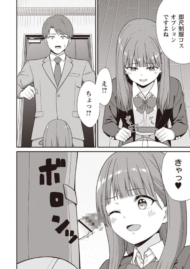 飲み会帰りでヘロヘロのサラリーマンが帰宅すると出迎えたのは優奈ちゃんだった!?部屋を間違えたことに気づいたが彼女はそれを気にも止めずにあいさつ代わりにズボンを脱がしておちんちんをしゃぶりはじめる。そしてサラリーマンを優奈ちゃんはベッドへ誘う…◇──勘違いから始まるJK風俗ラブコメディ☆