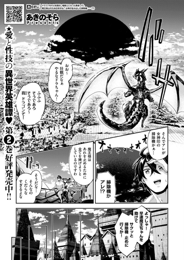 なんとかドラゴン娘を(ハメ)倒した勇者。やっと魔王の元にたどり着いた彼らの前に現れた最強の敵はーーまさかの掃除機!?女神の力を取り込み人型になった彼女(?)の吸引力の落ちないただ一つの性器によって、搾って、搾って、絞られまくる熱烈なバトル(セックス)が繰り広げられる★エロファンタジーのマイスター・あきのそら先生が贈る異世界’笑’天エロファンタジー!